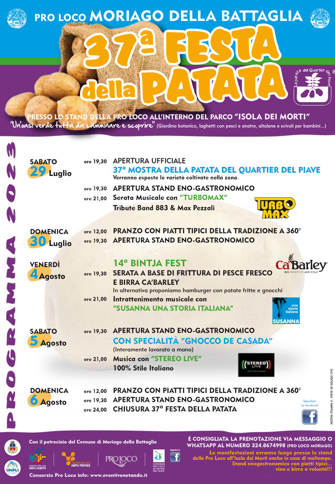 Moriago della Battaglia 37ª Festa della Patata dal 29 Luglio al 6 Agosto 2023